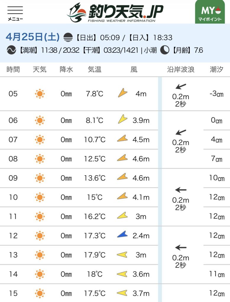 • 釣行日:2026年4月25日(土)