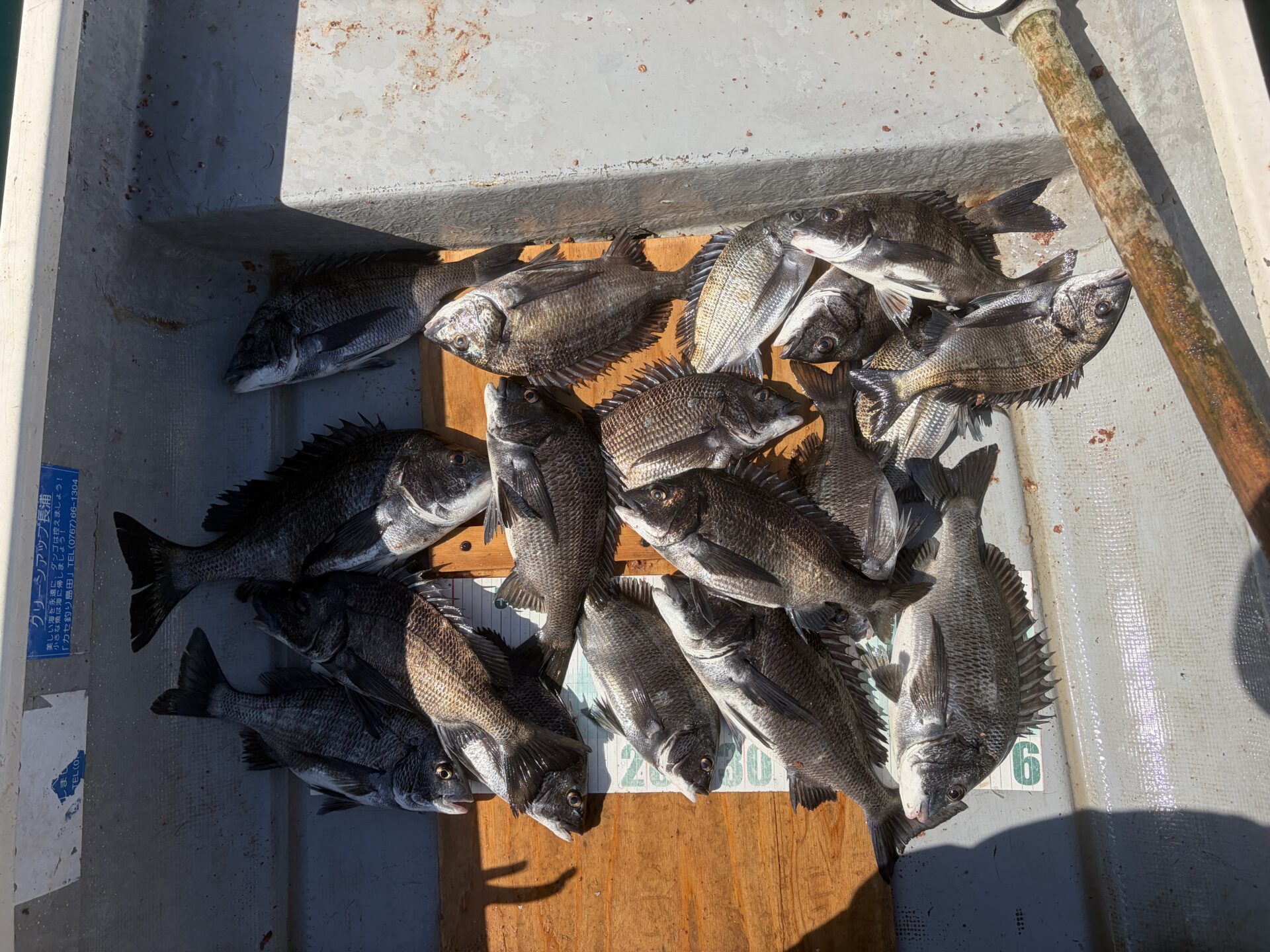 クロダイ43㎝、40㎝×2、38㎝~30㎝×15、計18尾。