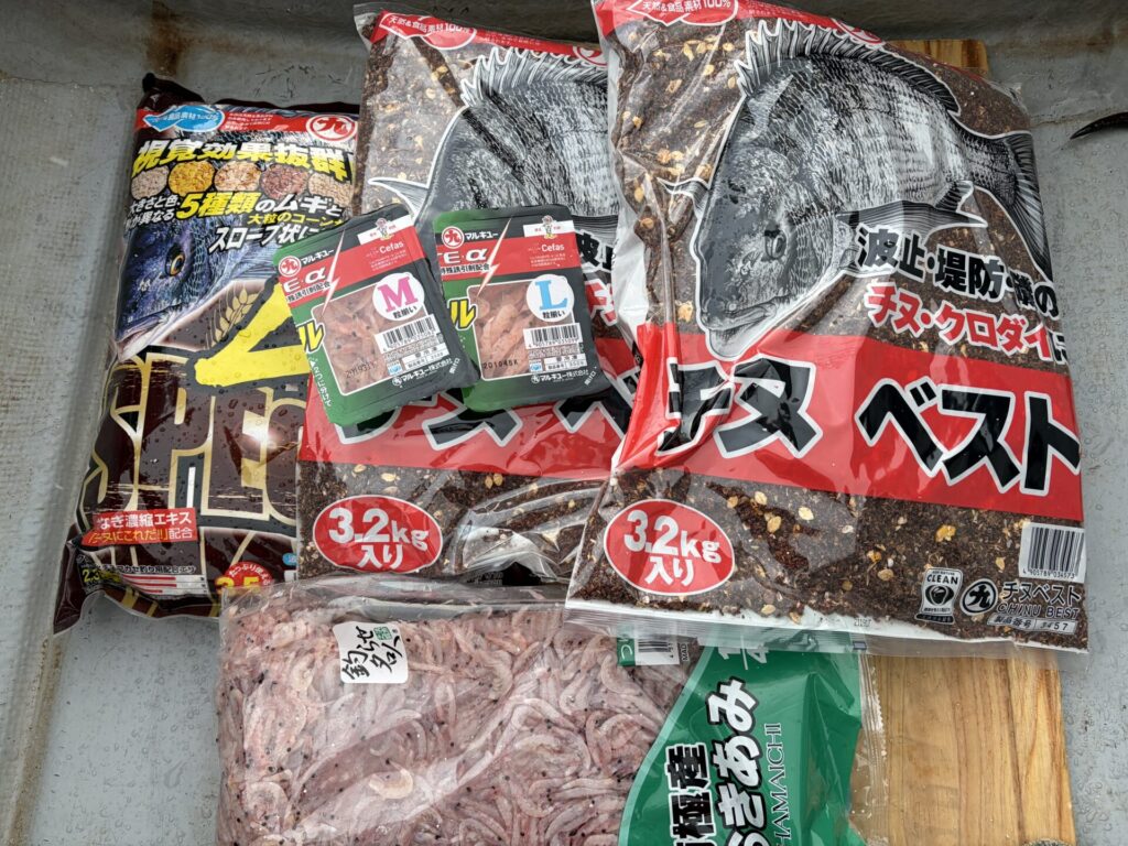 - マキエ:オキアミ3kg、チヌベスト2袋、チヌパワームギスペシャル1袋