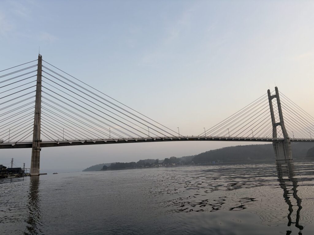 ツインブリッジ北側の深浦に手漕ぎボートで大移動。