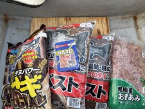 - マキエ:オキアミ3kg、チヌベスト2袋、チヌパワームギスペシャル1袋