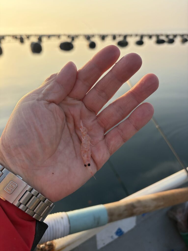 次に、マキエを作る際に、海水に触れると、冷たい。