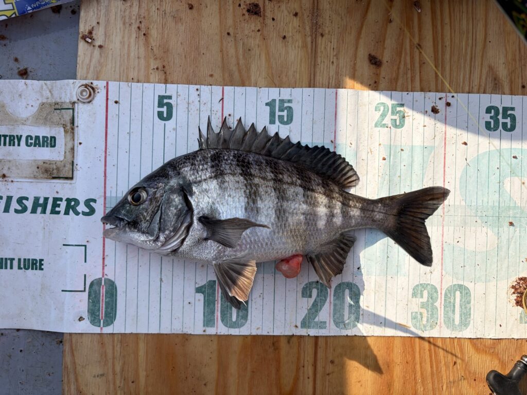 かけ上がりの浅場を狙ったが、時間帯が悪かったのかチヌ1尾のみ。