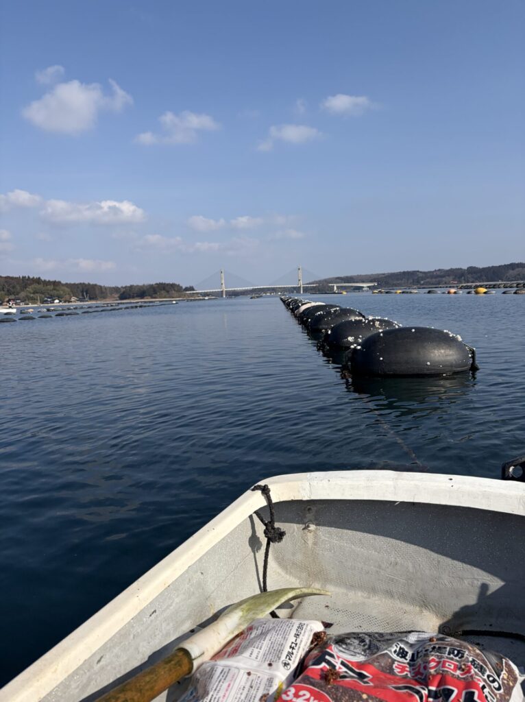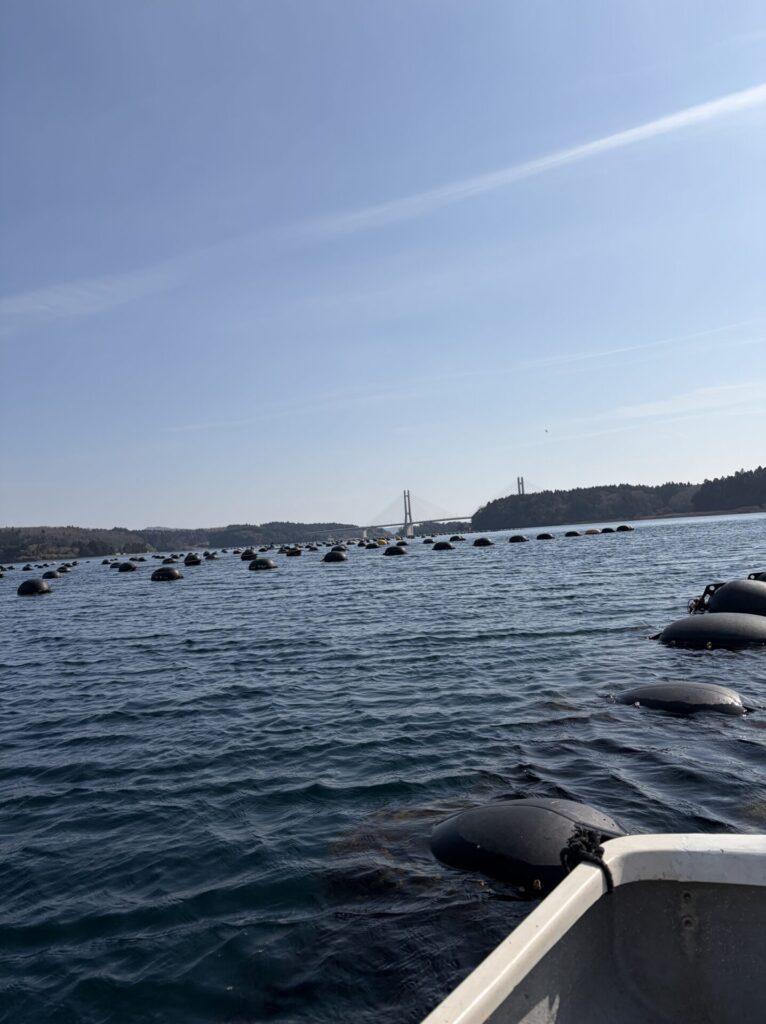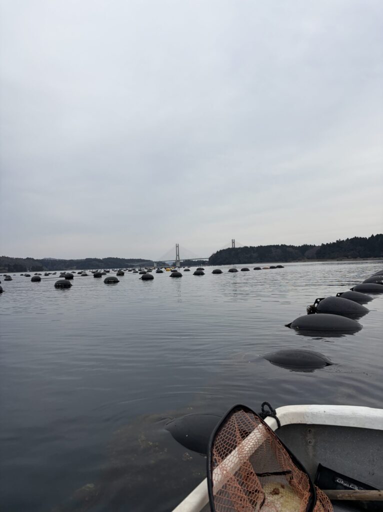 牡蠣棚の牡蠣貝が深いところまで、見える見える‼