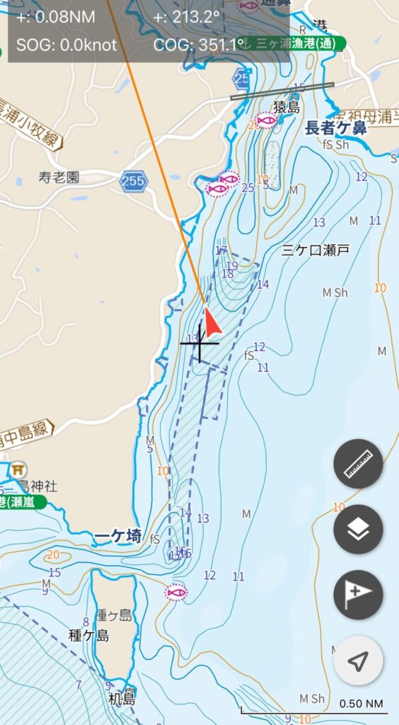 タナを深めにして、底から離さないようにして、サシエを流すことにしました。