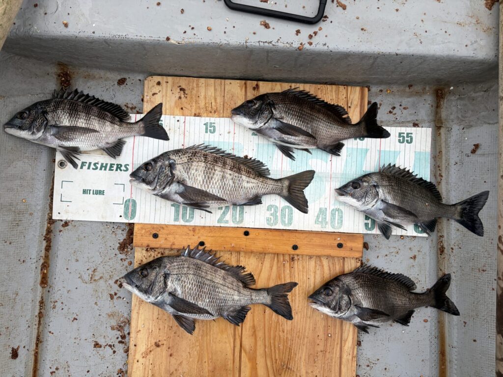 クロダイ37㎝、35㎝、33㎝、30㎝×3、計6尾。