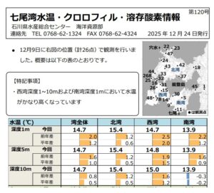 いつも見ている七尾湾情報に2025年12月の海水温データがアップされた。