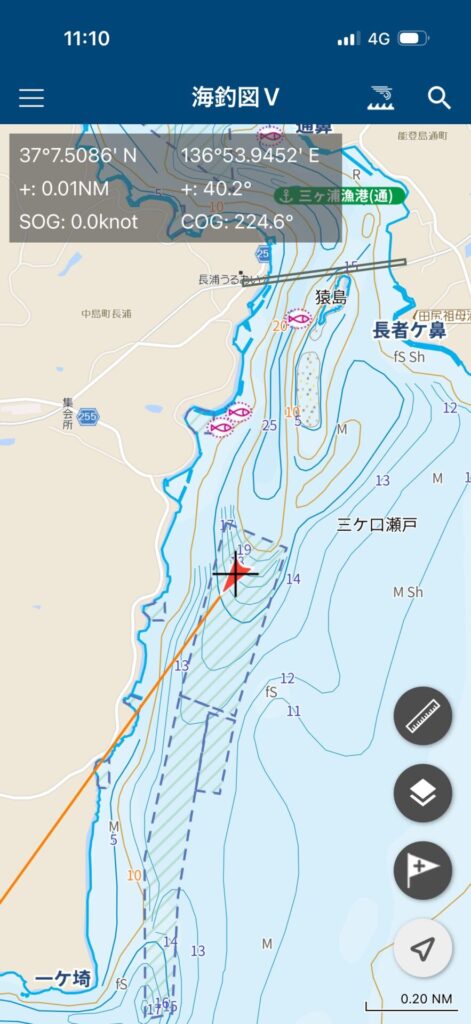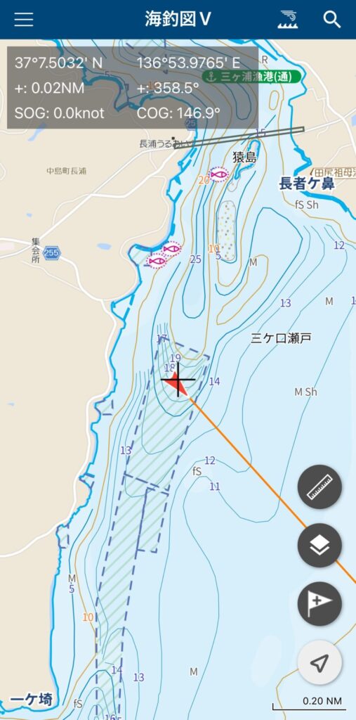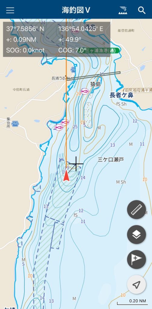 でも、実際は潮が変わらないまま、和倉からツインブリッジ方面に流れる潮が続いた。
