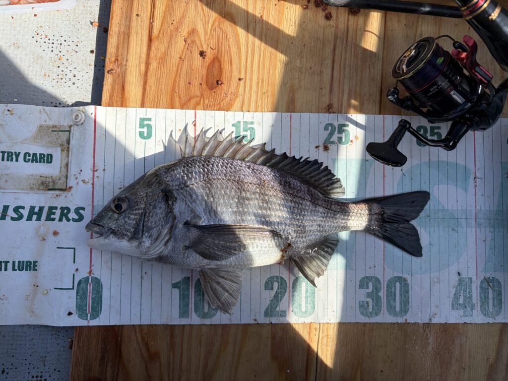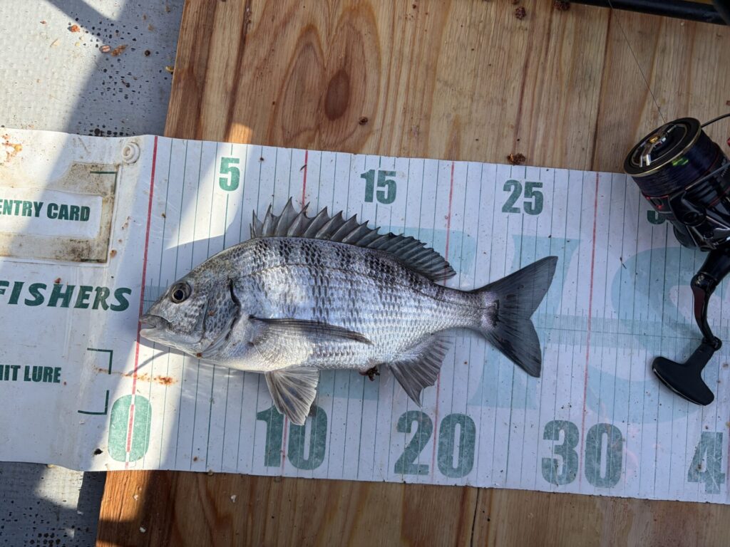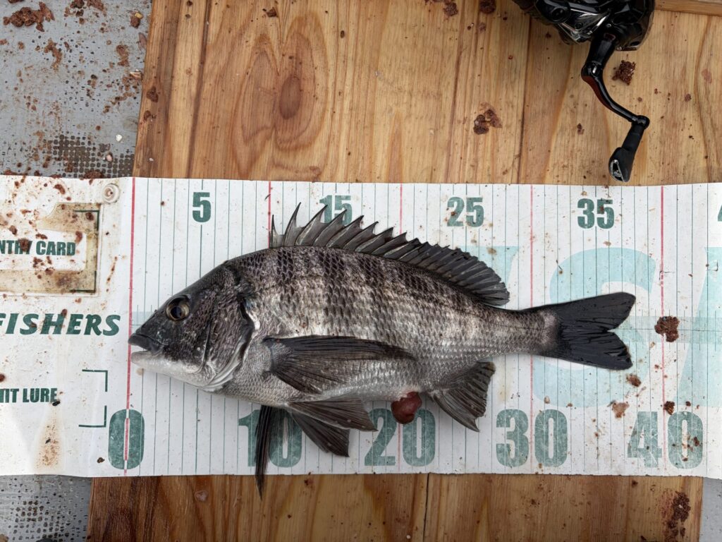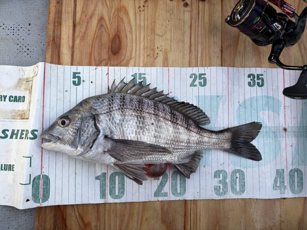 やっと潮が動き出して、この日最長寸のクロダイ38㎝追加。