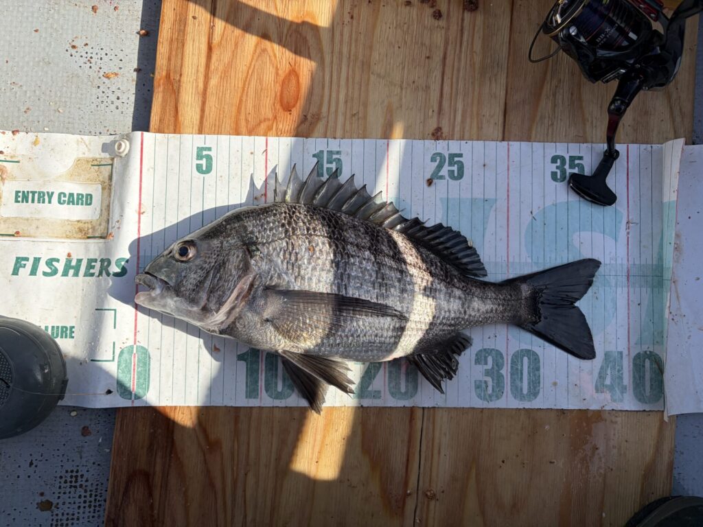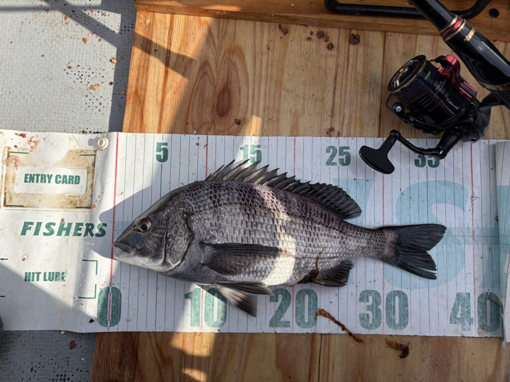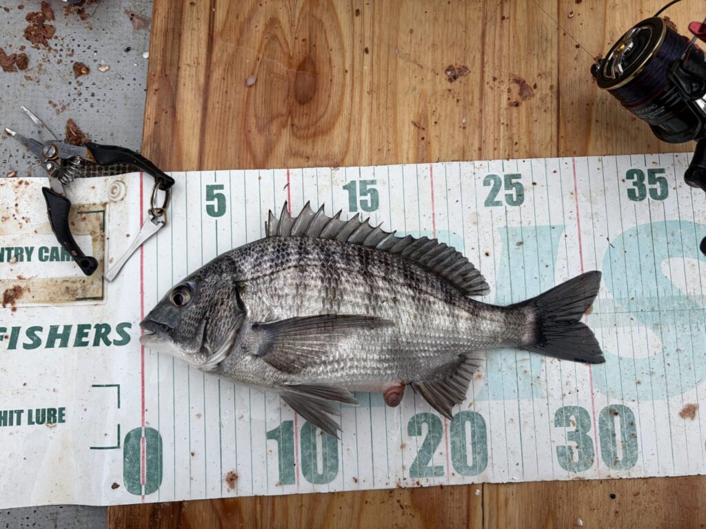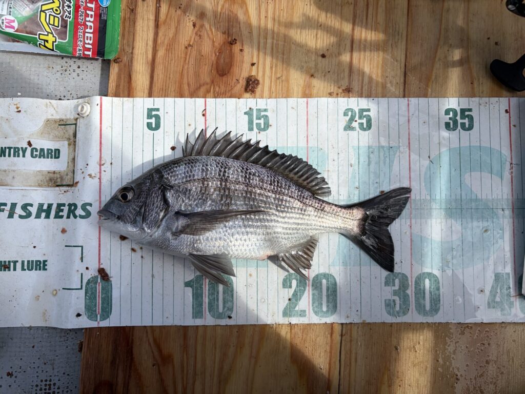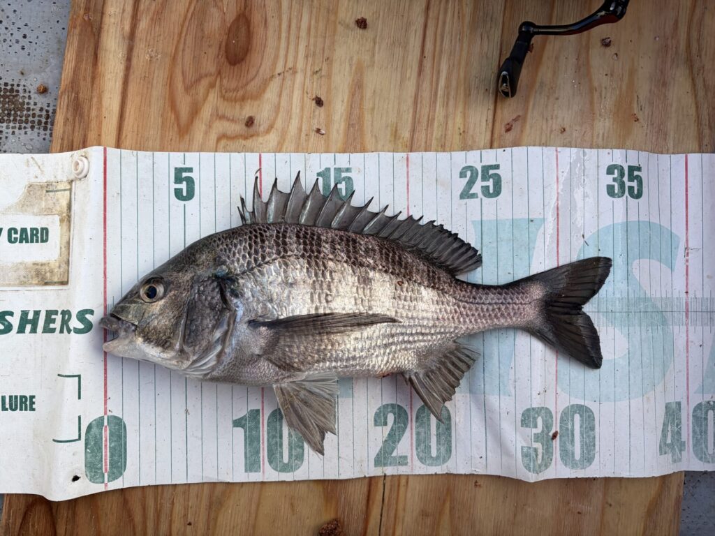 やっと潮が動き出して、この日最長寸のクロダイ38㎝追加。
