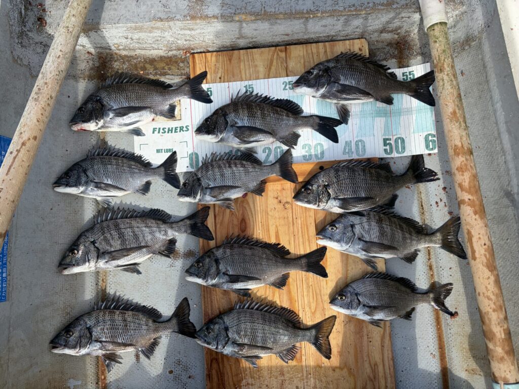 クロダイ38~30㎝、12尾で、久々のつ抜け。