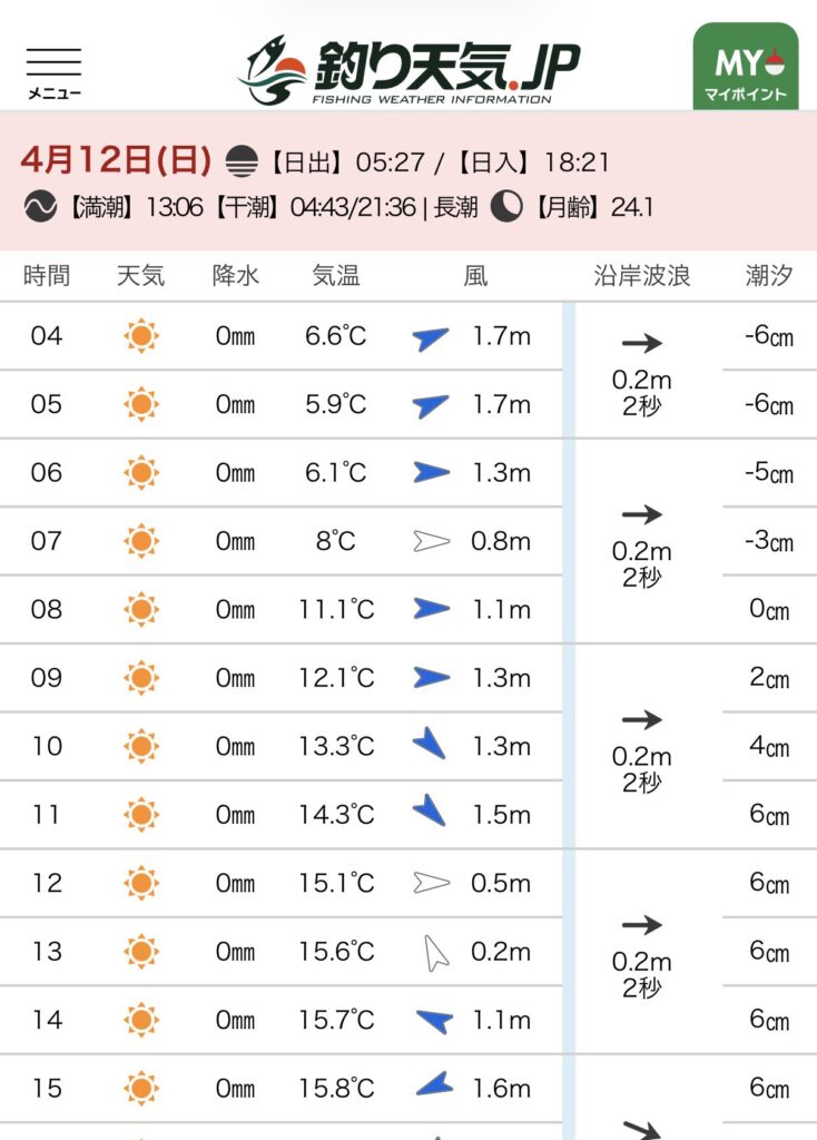 - 釣行日:2026年4月12 日(日曜日)