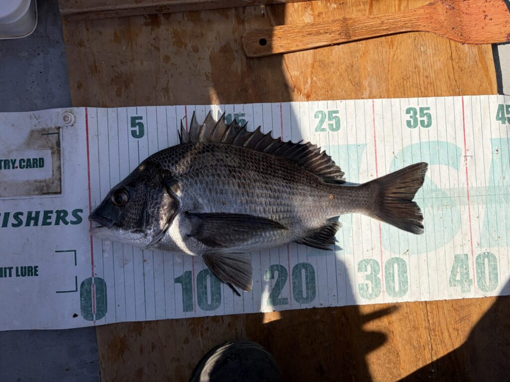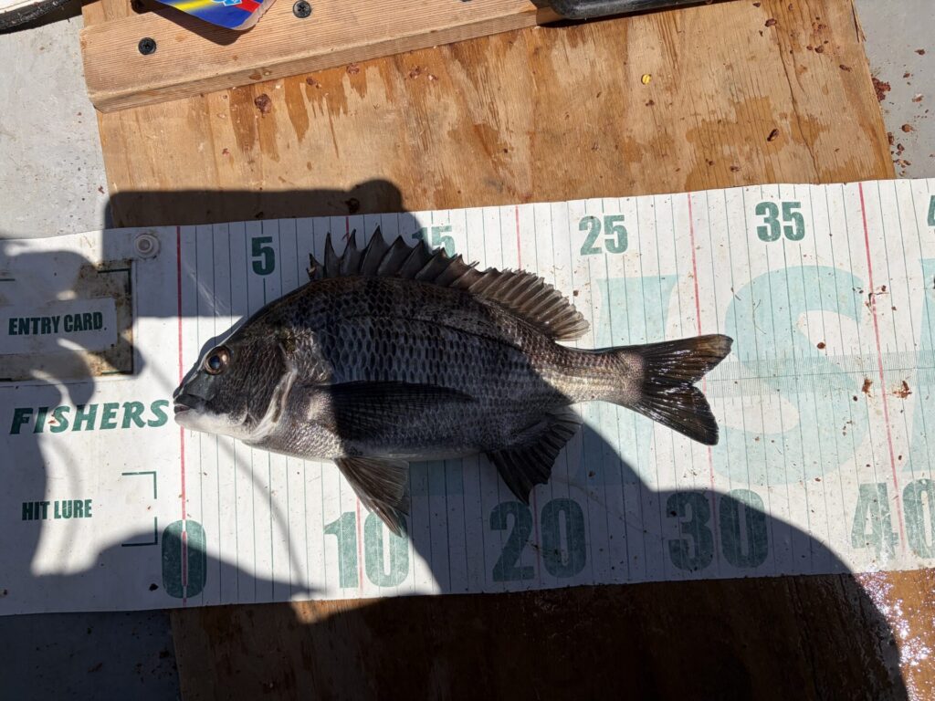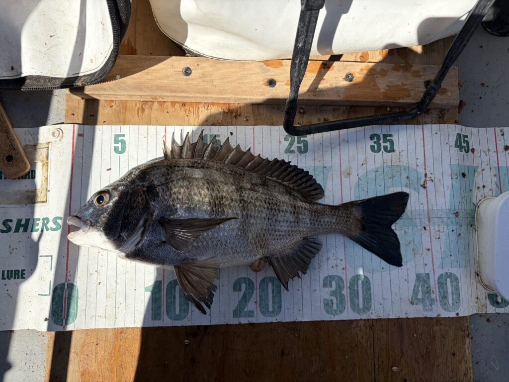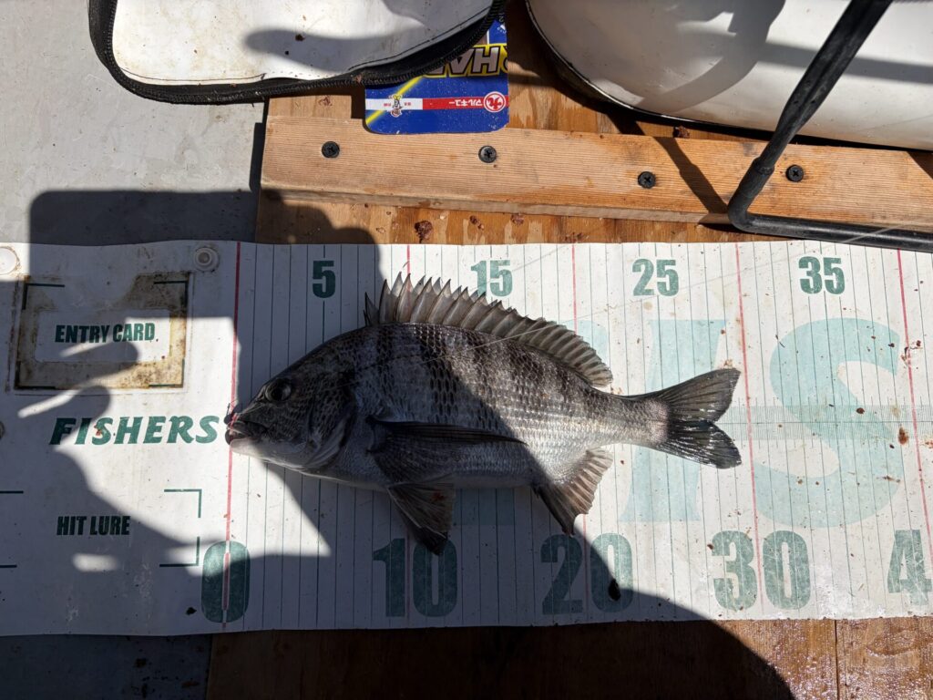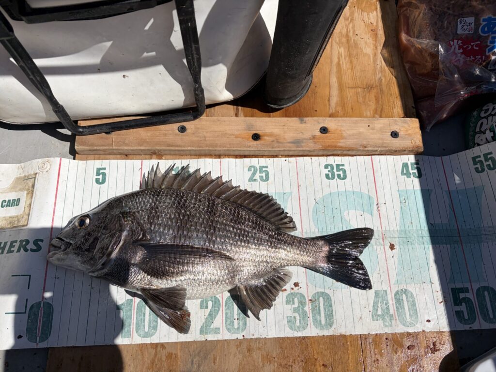 なので、底付近を探ると、クロダイ42cm。