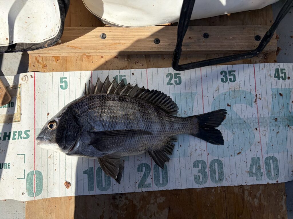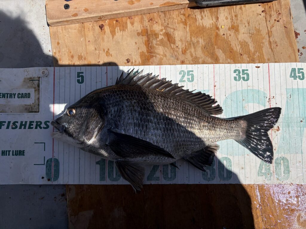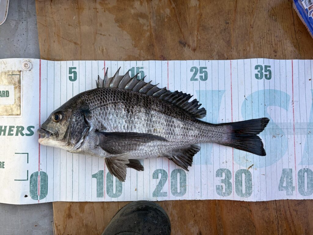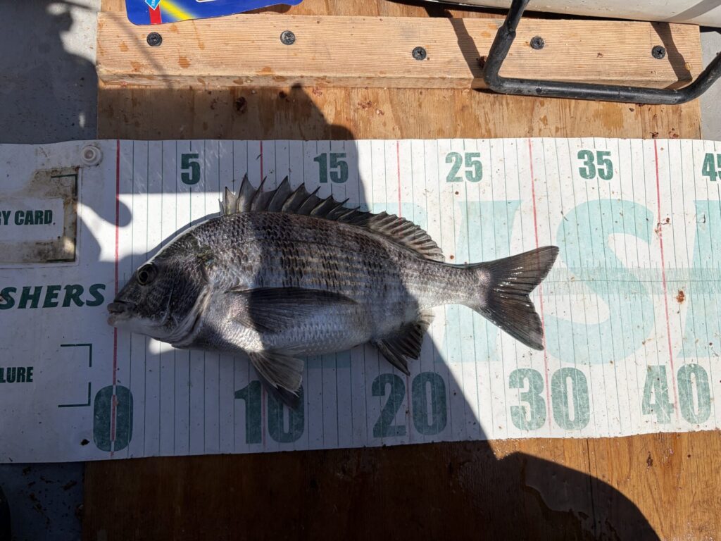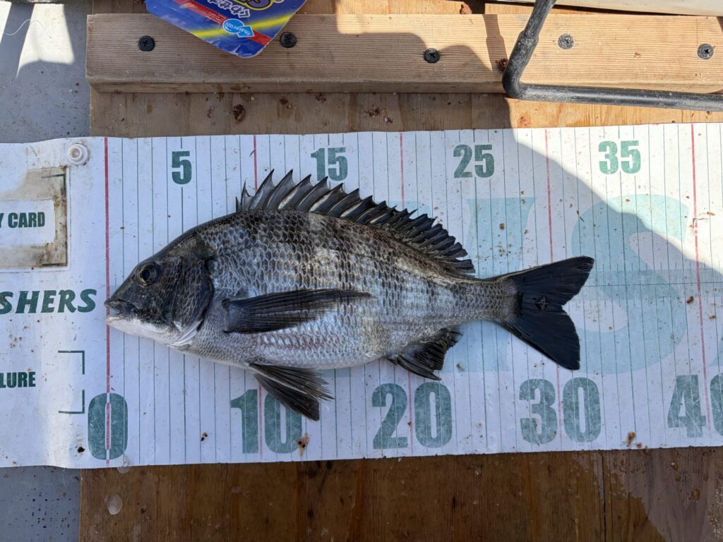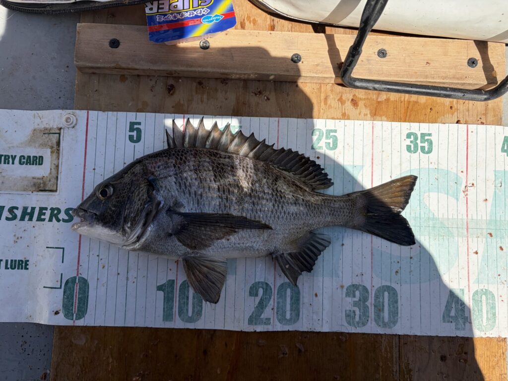 なので、底付近を探ると、クロダイ42cm。