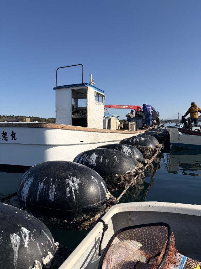 もう1隻、牡蠣上げ作業をしていたので、その場所に移動。