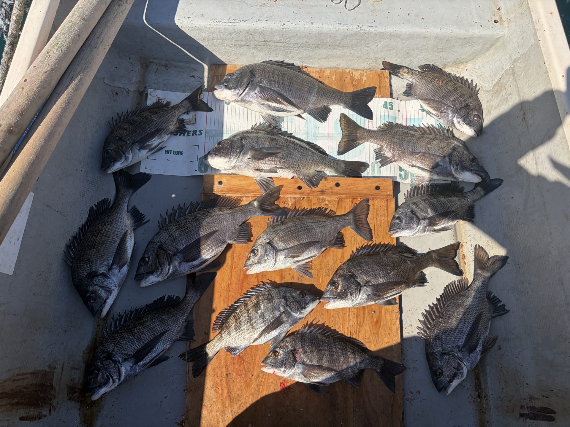 クロダイ42cm、40cm、39〜30cm×12尾、合計14尾。