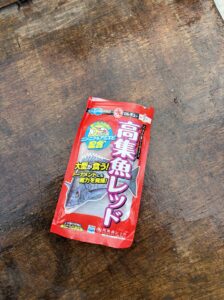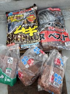 アミ2角、オキアミ2kに、チヌベスト1袋、チヌパワームギスペシャル1袋。