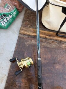 いつもの磯竿ベイトリールでのチヌ釣り。