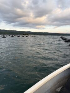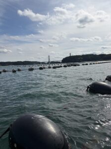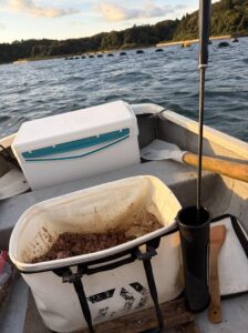 この日は、牡蠣貝が、たっぷり付いた牡蠣棚で釣りをする。
