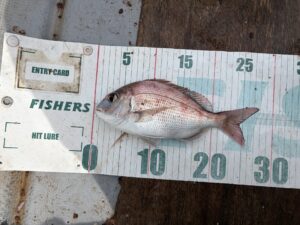 9時53分、クロダイ30㎝ギリ。