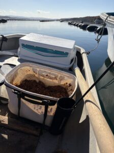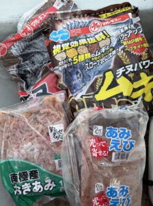 マキエは定番、アミ2角、オキアミ2㎏、チヌベスト2袋、チヌパワームギスペシャル1袋。