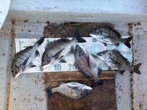 クロダイ33㎝、30㎝、31㎝、サンバソウ2尾、チンタ4尾。