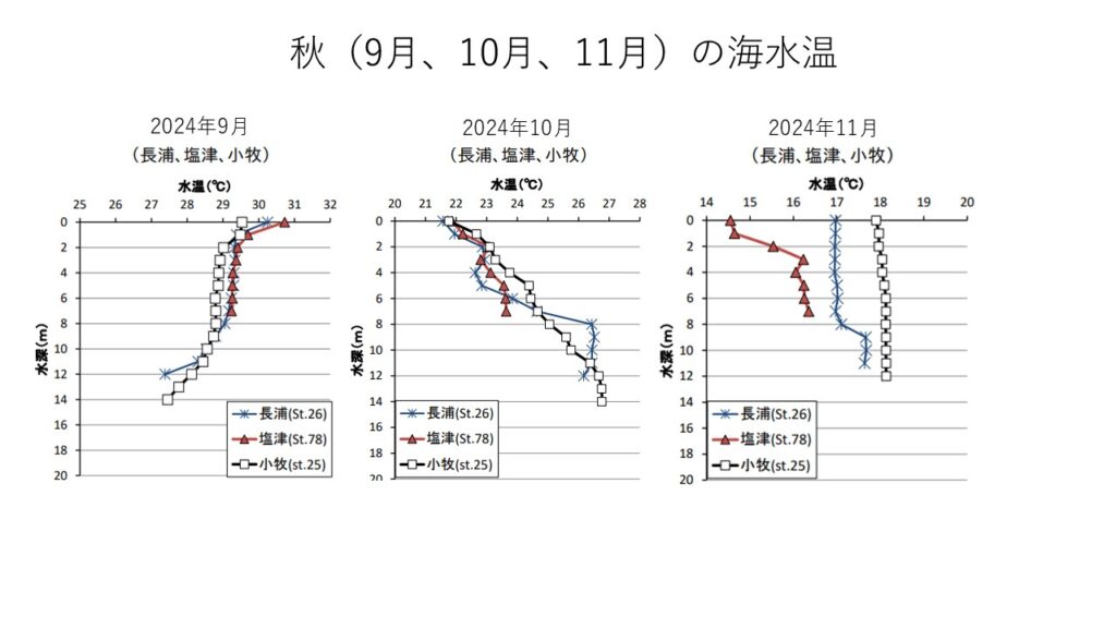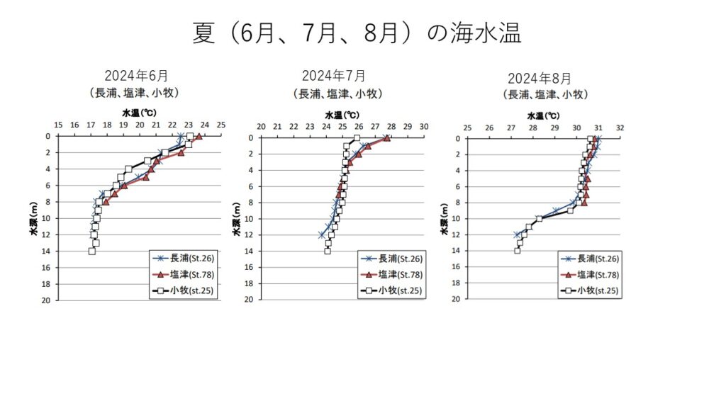 夏も、同じように海面の水温が、どんどん上昇して、遅れて、海中の水温が上昇する。