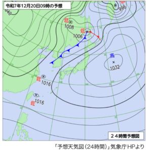 中国大陸に低気圧、前線があるので、風は吹きそう。
