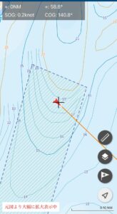 海釣図では、こんな感じで、水深18mくらいのポイント。