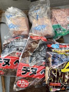 アミ2角、オキアミ2kg、チヌベスト2袋、チヌパワームギスペシャル1袋。