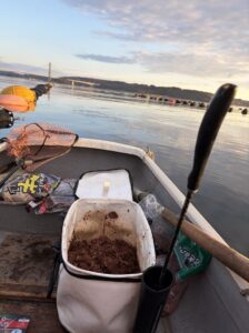 ただ、本来の目的は、ここで牡蠣上げ船の様子を見て、牡蠣上げ作業が始まったら、その場所に行って、落ちてくる牡蠣貝に群がるチヌを狙う作戦。