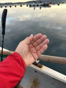 また、ポイントは、もう牡蠣棚に絞る。かけ上がりポイントは、ほかの人の釣果を聞くまでは、しばらく止める。