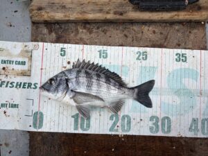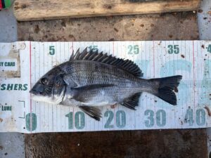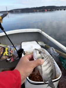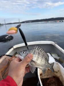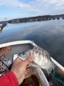 釣果は、クロダイ36㎝、34㎝、30㎝、35㎝、ほかチンタ5尾。