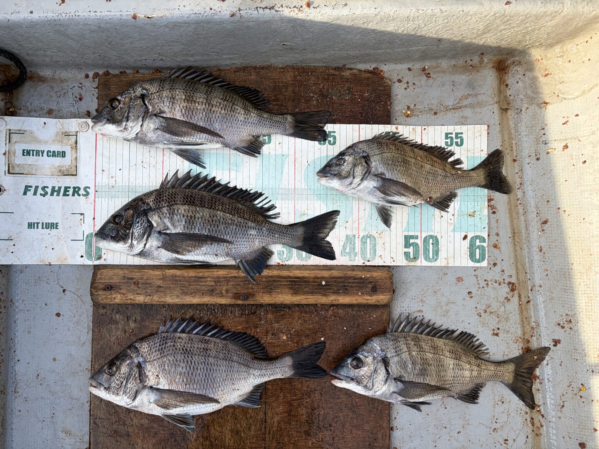 クロダイ37㎝、36㎝、35㎝、34㎝、30㎝、計5尾。