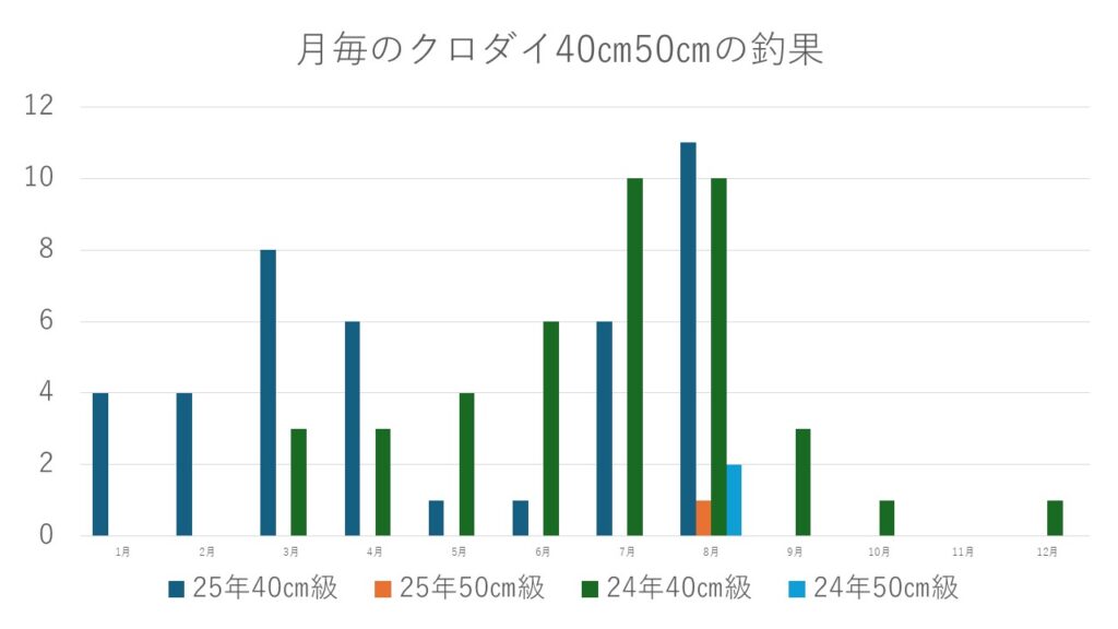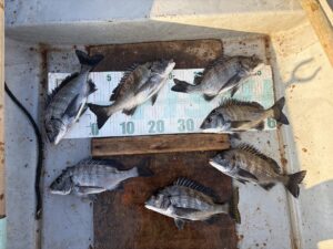 クロダイ31㎝、32㎝、33㎝×3、34㎝×2、計7尾。