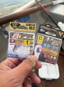 鈎は、がまかつゼロホール、尾長くわせ8号と貫チヌ1号。