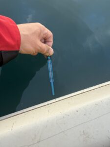 自分の棒温度計による測定値では、先週、今週と海面の水温低下を確認しているが、ちょっと水深が深くなると、まだまだ水温が高いということだと思う。