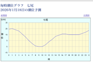 - 潮回り:大潮。9時14分、干潮、16時41分、満潮。