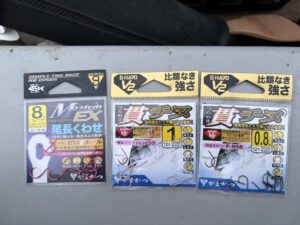 - 鈎:がまかつ、ゼロホール尾長くわせ8号、貫チヌ1号、0.8号