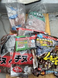 - マキエ:アミ1角、オキアミ2㎏、チヌベスト2袋、チヌパワームギスペシャル1袋