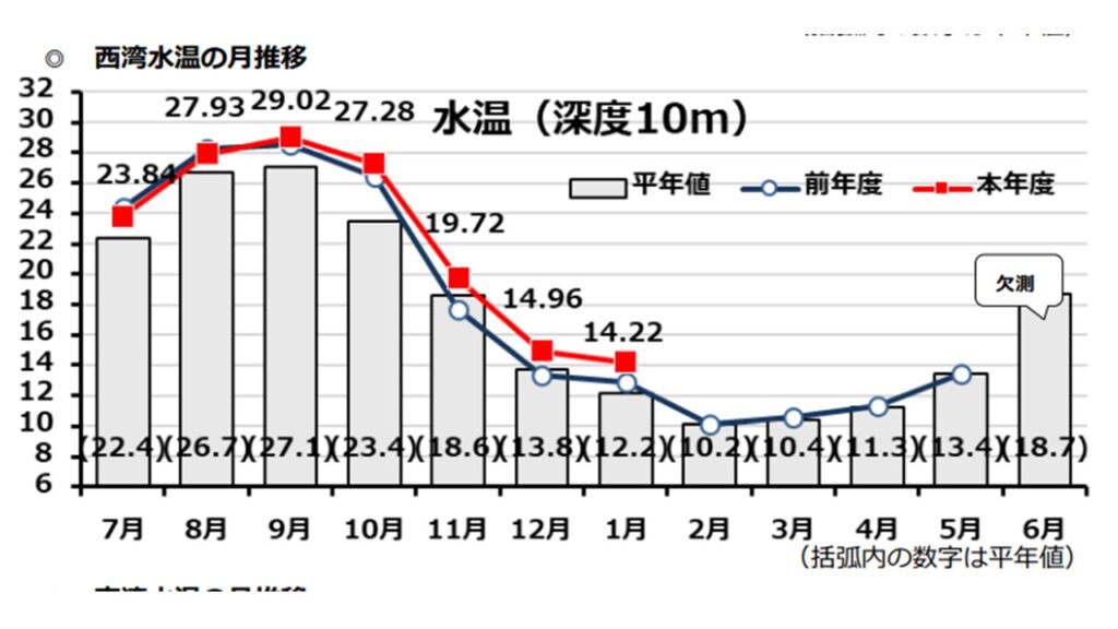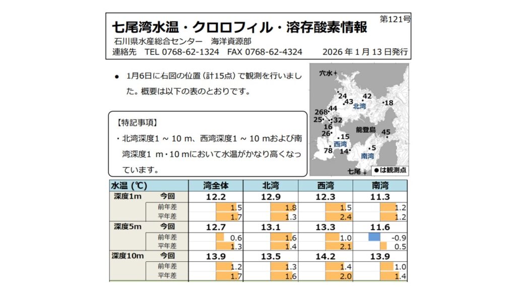 昨年末から能登は海水温が高かった。今年になっても、急に水温が低下することはないだろう。