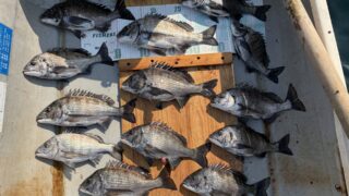 能登長浦チヌ釣り、やっと水温低下、牡蠣棚でクロダイ37㎝以下5尾