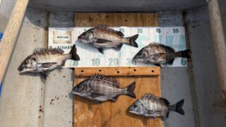 2月チヌ釣りで、水温7℃と低く、透明度が高い海でした。それでもクロダイ37㎝、35㎝、33㎝、30㎝×3、計6尾を釣りました。釣れた要因として思っていることをご紹介します。